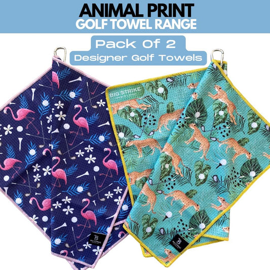 Microfiber Waffle Pattern Golf Towel Set - Super Absorbent Animal Print Golf Towels - 2 Pack