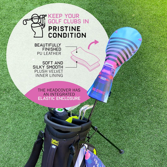 Big Strike Golf - Modern Golf Club Driver Head Covers - Premium PU Leather Headcovers (Retro Pink Lambo Sunset)
