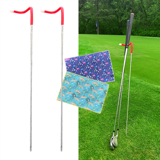 2 Pack V-Shaped Golf Club Stand With Golf Towels Set of 2 Keeps Your Clubs Clean, Dry & Visible, V-Stick Club Stand Made of Highly Durable Stainless Steel - Easy to Carry Golf Club Holder