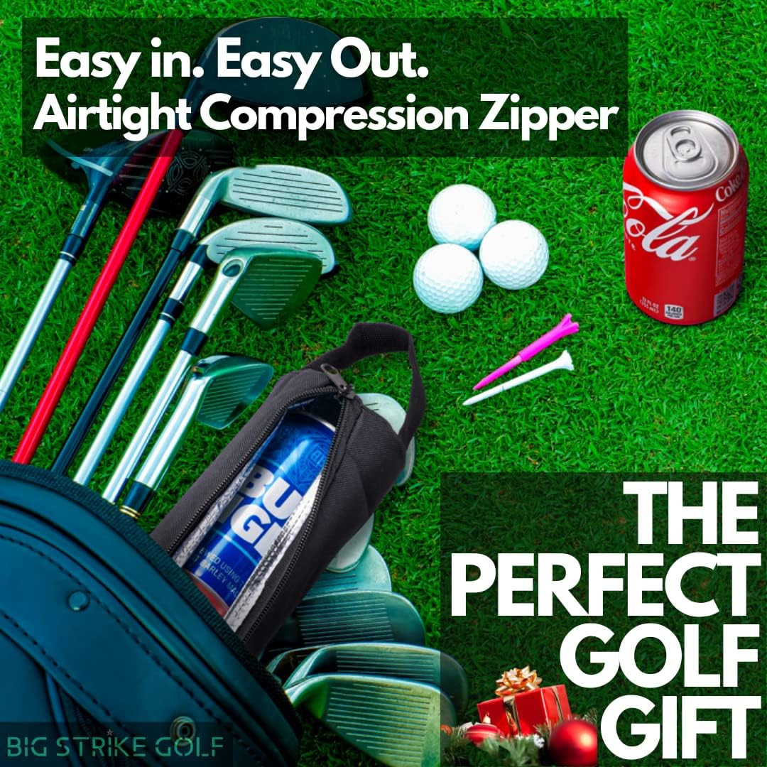 - ⛳ STYLISH AND PORTABLE - The can sleeve for beer and other beverages offer style and functionality. The Big Strike Golf beer can sleeve is slim and easily slides into most golf bags, and you can also easily bring it along when hiking, camping, swimming and more. No more bulky beer cooler bag!