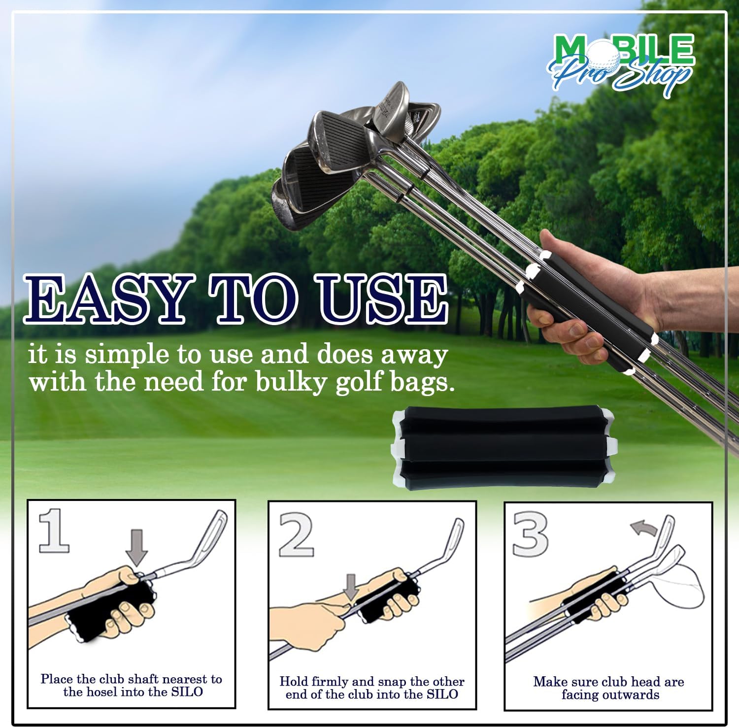 - The Golf Club Carrier is cylindrical, small, and elegant, allowing you to easily clamp/unclamp your club without any complicated installation.