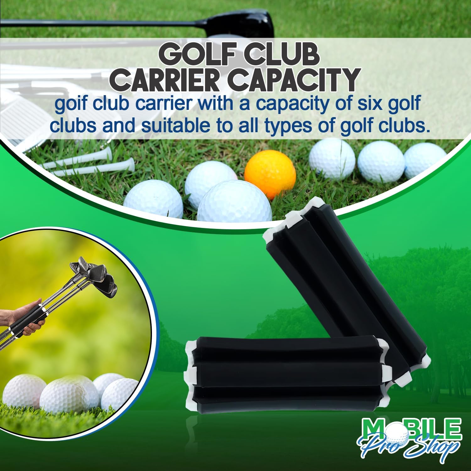 - Handheld Golf Club Carrier with a capacity of six golf clubs and suitable to all types of golf clubs. Fits perfectly in your hand and keeps your fingers dry.